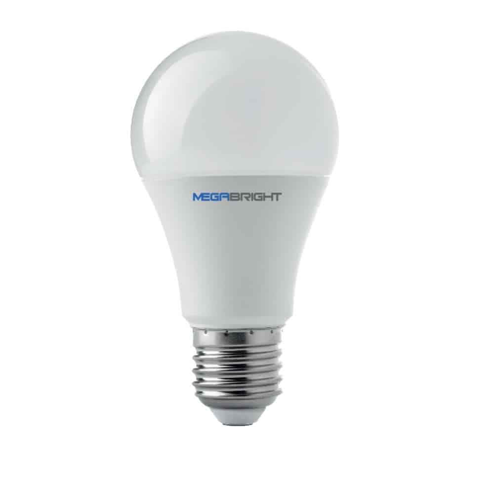 Megabright Ampolleta Modelo: Led A60 Clásica Potencia: 9.5W. Luz fría 6400K. Base E27, 10000 horas de vida útil, Lúmenes: 800lm, Ángulo: 200°