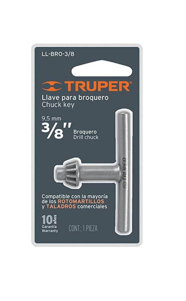 Llave de mandril/chuck. Medida: 3/8. Marca: TRUPER. Compatible con la mayoría de los taladros y rotomartillos.