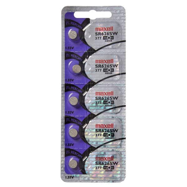 Marca: Maxell Material: óxido de plata Modelo: SR626SW Voltaje: 1.55v Medidas: 2.6mm x 6.8mm Cantidad: 1 pila